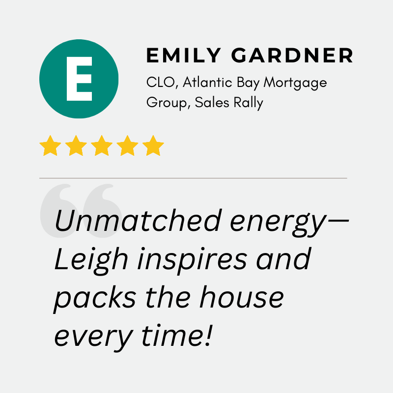 Leigh’s ability to command a room and inspire audiences has made her the go-to emcee and auctioneer for everything from charity galas to private corporate events. Her expertise as a national speaker, trainer, and real estate leader allows her to seamlessly engage diverse audiences, all while maintaining a personal touch that makes every event special.